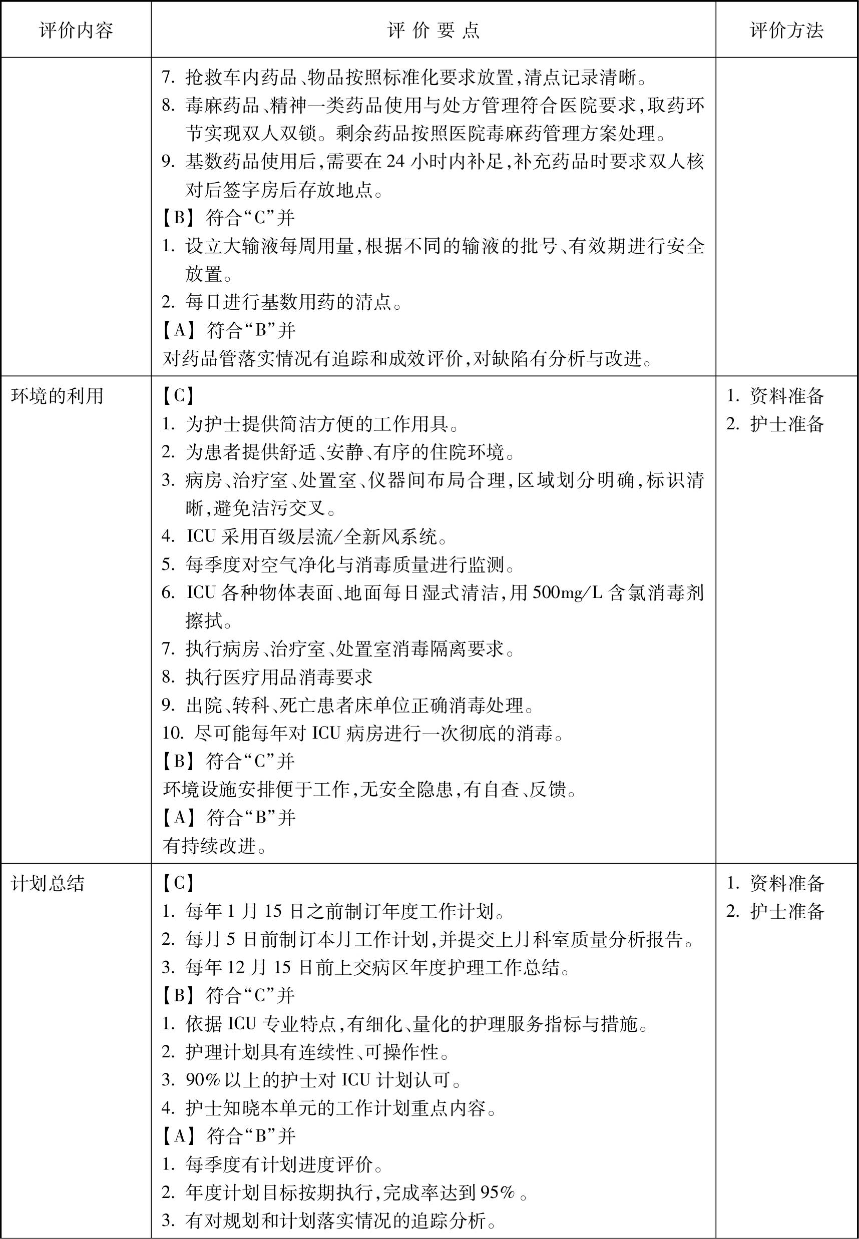 (8)主准班对重症患者急救物品、药品、仪器提供保障并负有责任。保障责任班、夜班护士治疗、用物齐全并处在备用状态。
