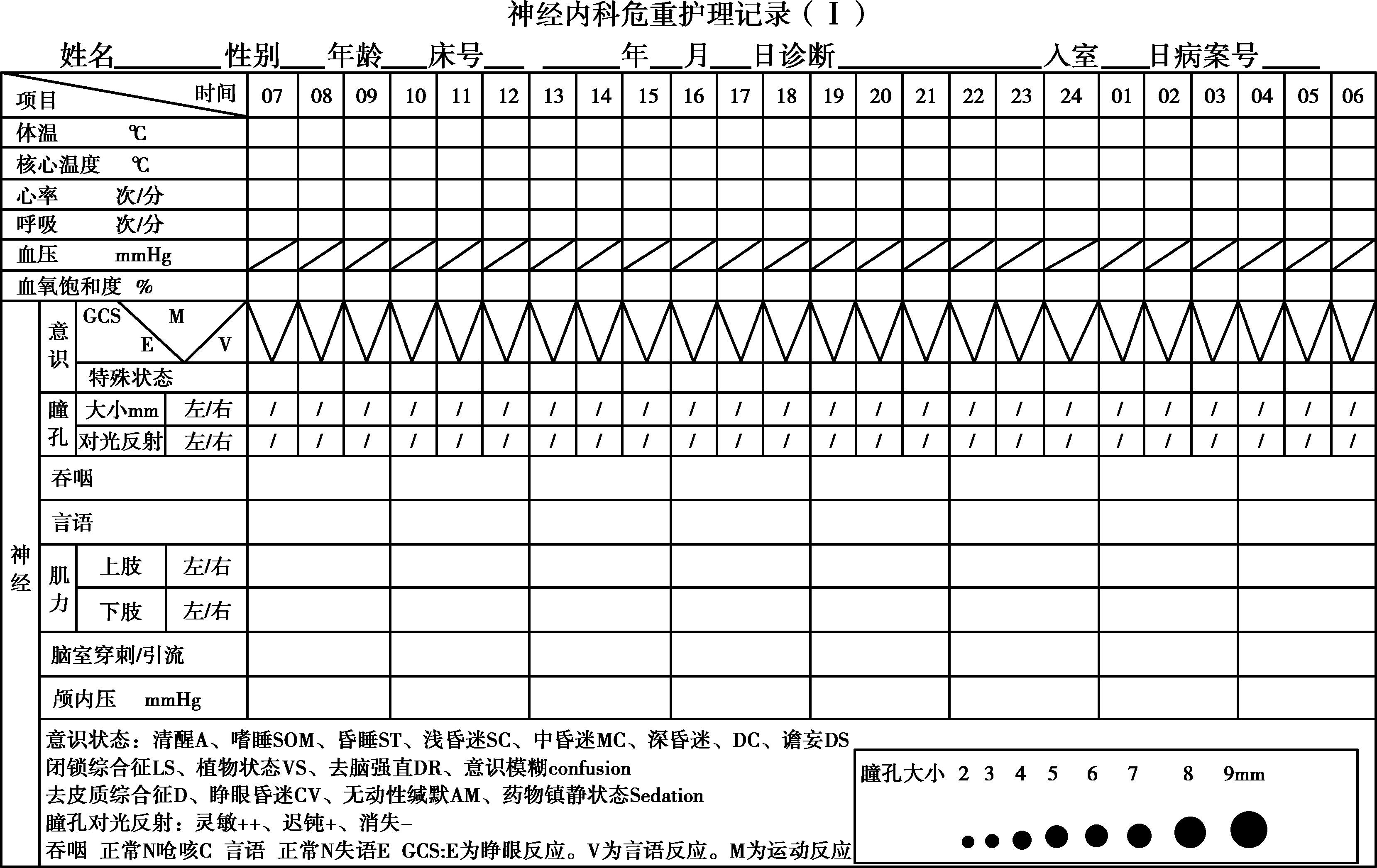 图2-2-1 神经内科危重护理记录(Ⅰ)