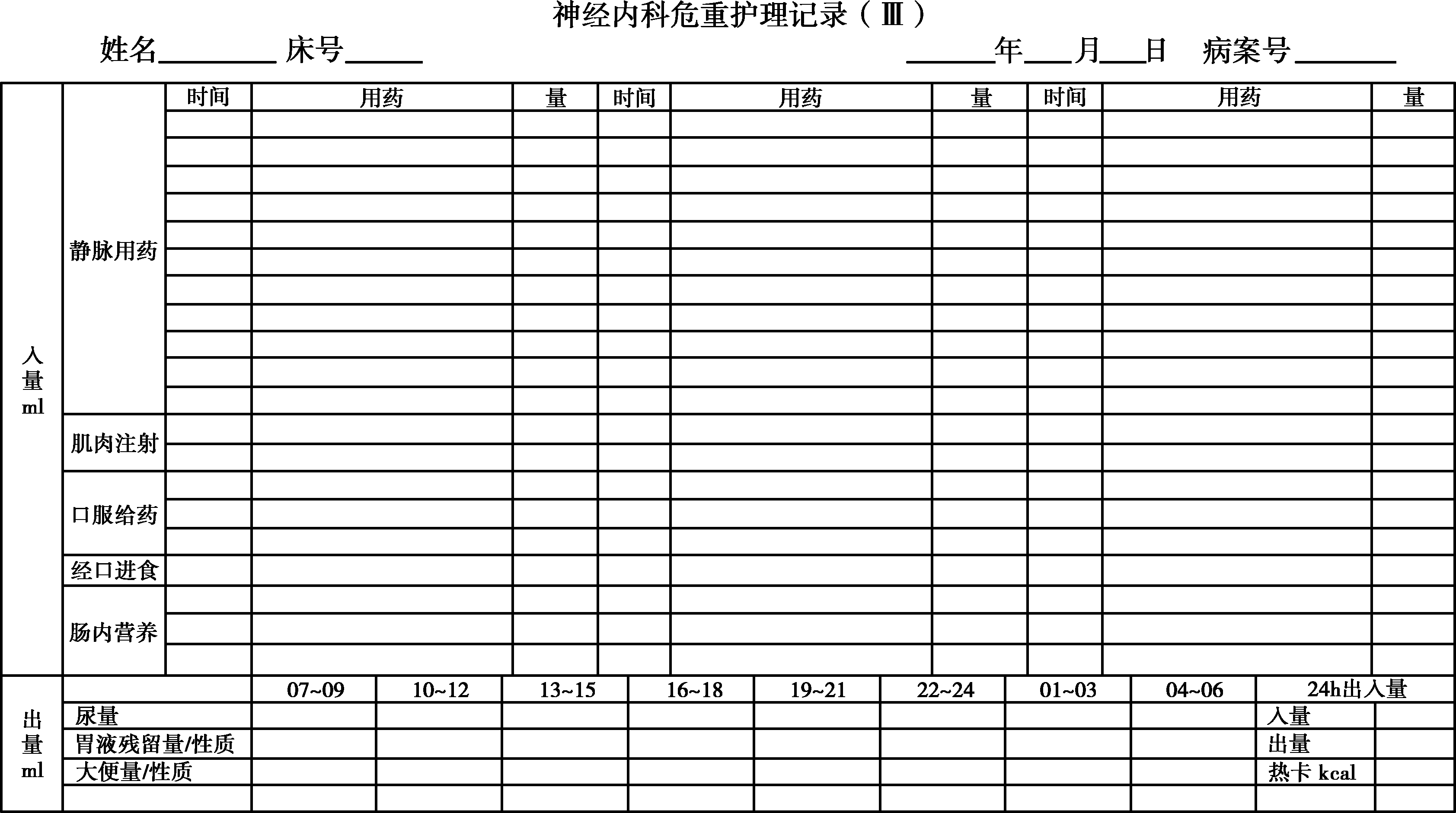 图2-2-3 神经内科危重护理记录(Ⅲ)