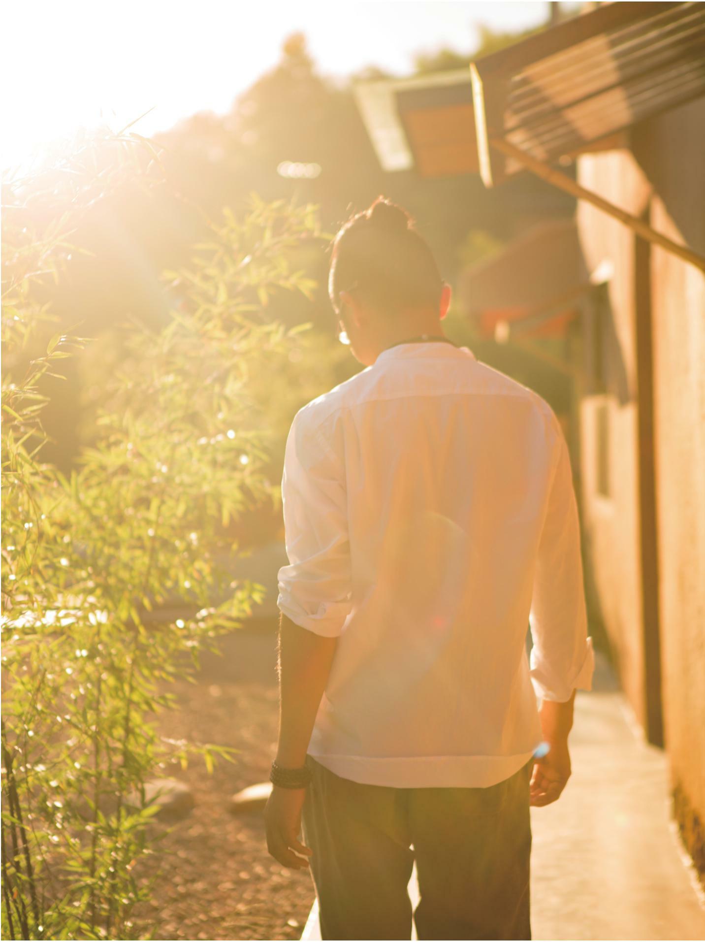 他每天都在不停地做事。安排完早饭,就去浇花;浇完花,就去修柴门篱笆;放下工具,就去打扫客人的房间;打扫完房间,时间差不多了,要去安排午饭。吃完午饭,又去继续做院子的景观;可能做了会儿景观,又要洗手去接待来参观的领导和记者,说不定还要为他们准备晚饭。晚饭后,木工来了,又要一起给一个未装完的洗手间贴瓷砖……
