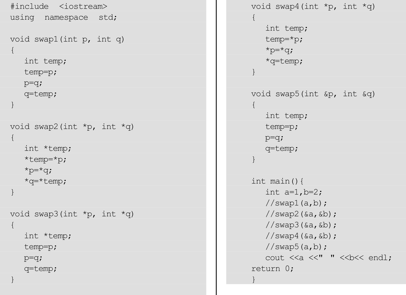 面试例题1: 下面5个函数哪个能够成功进行两个数的交换?[中国某互联网公司2009年12月笔试题]