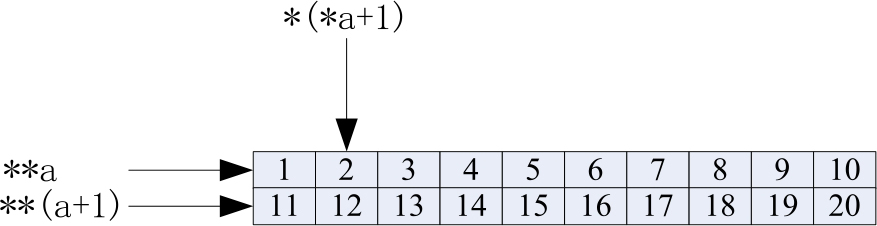 实际上,b的数据分布还是按照1、2、3、4、5、6、7、8、9、10分布的,所谓b[0]和b[1]实际上只是指向其中一个元素的指针。