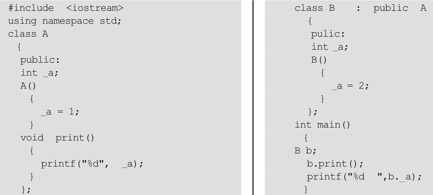 解析 :B类中的_a把A类中_a的“隐藏”了。在构造B类时,先调用A类的构造函数。所以A类的_a是1,而B类的_a是2。