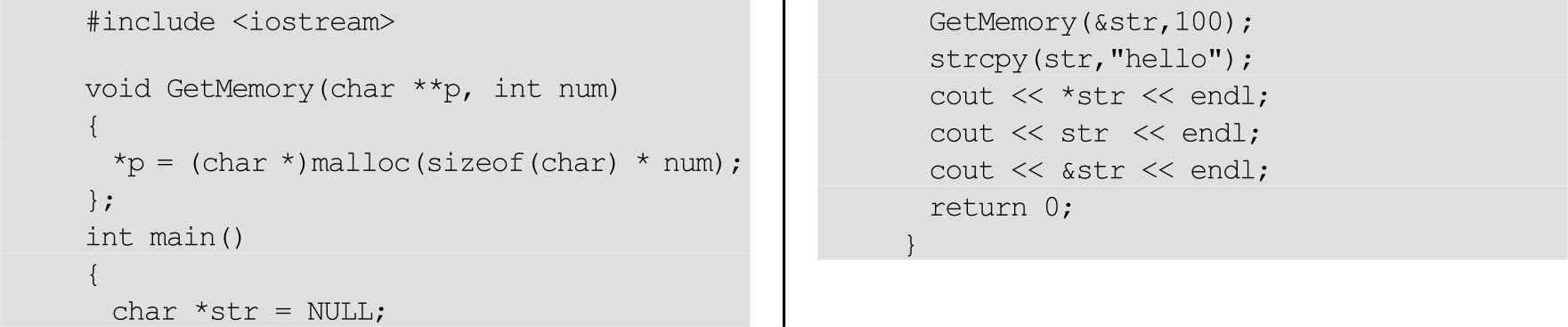 由于“指向指针的指针”这个概念不容易理解,我们可以用函数返回值来传递动态内存。这种方法更加简单,代码如下: