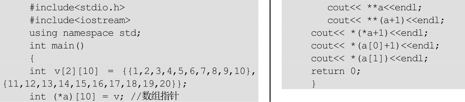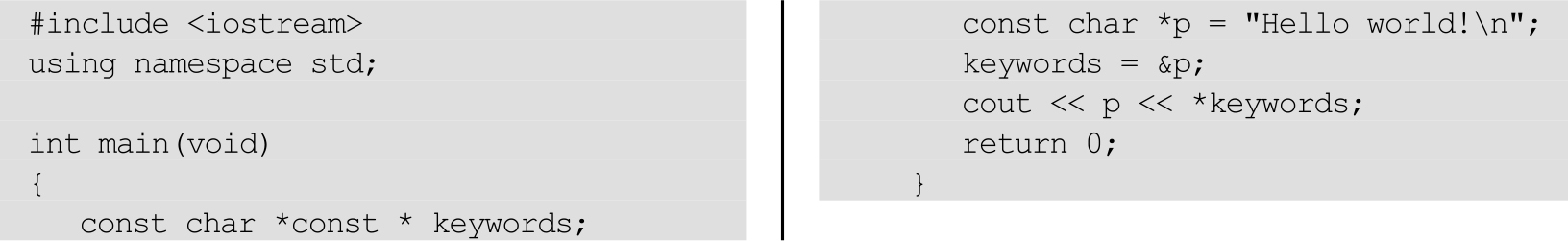 (3)一个指向指针的指针,它指向的指针是指向一个整型数(A pointer to a pointer to an integer)