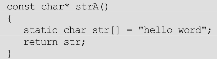 解析 :这个str里存的地址是函数strA栈帧里“hello word”的首地址。函数调用完成,栈帧恢复到调用strA之前的状态,临时空间被重置,堆栈“回缩”,strA栈帧不再属于应该访问的范围。存于strA栈帧里的“hello word”当然也不应该访问了。这段程序可以正确输出结果,但是这种访问方法违背了函数的栈帧机制。