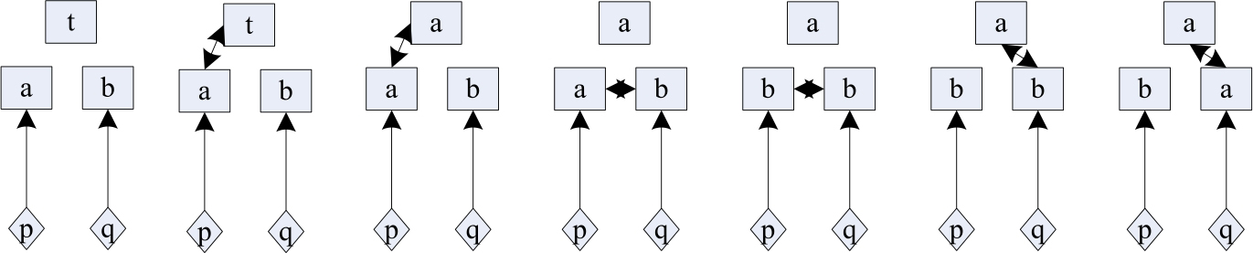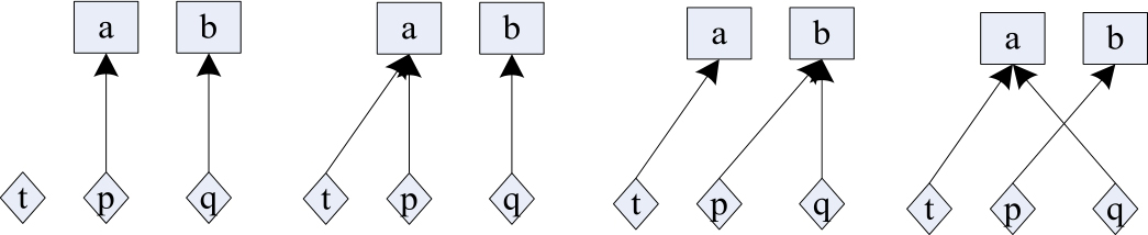 意思是p指向了*q所指向的地址(也就是b)。q指向了*t所指向的地址(也就是a),如下图所示。