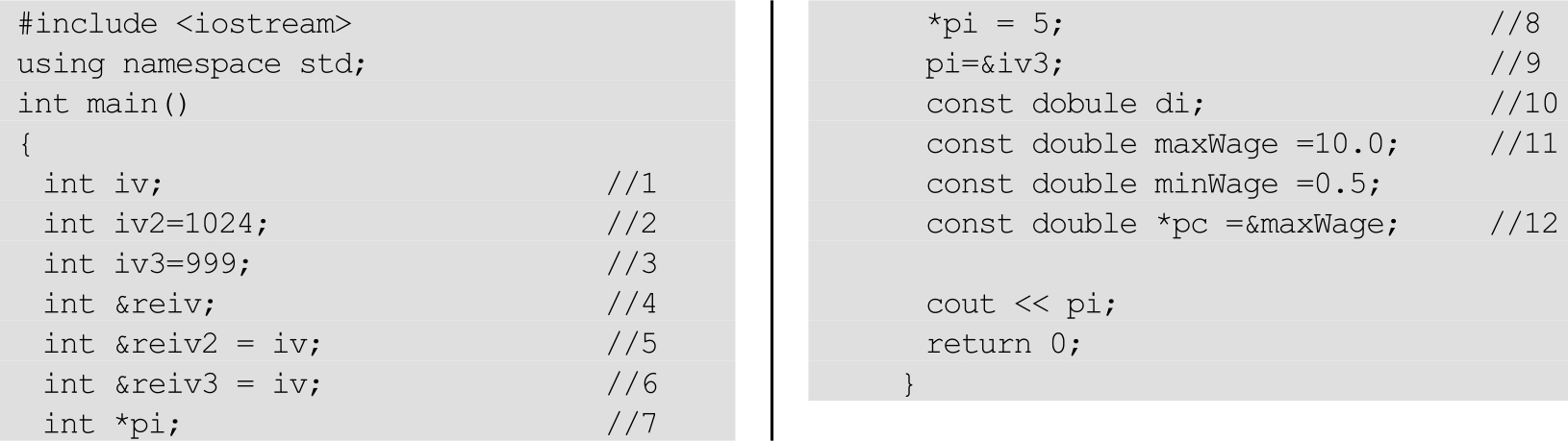 ● 5正确,声明了一个引用reiv2,同时初始化了,也就是reiv2是iv的别名。
