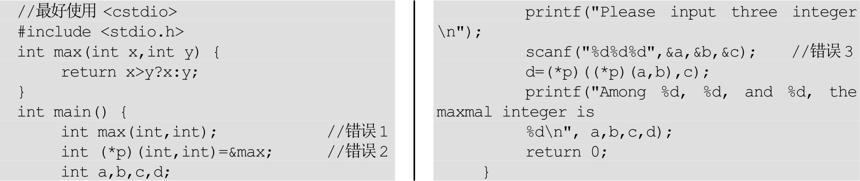 ● 8错误,整数指针pi并没有指向实际的地址。在这种情况下就给它赋值是错误的,因为赋的值不知道该放到哪里去,从而造成错误。