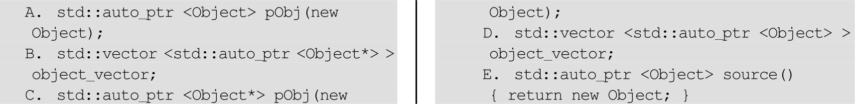面试例题2 :In C++,which of the following are valid uses of the std::auto_ptr template considering the class definition below?(下面关于智能指针auto_ptr用法正确的是哪项?)[美国软件公司M2009年12月笔试题]