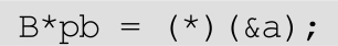 这是一个野蛮的转化,强制把a地址内容看成是一个B类对象,pb指向的是a类的内存空间: