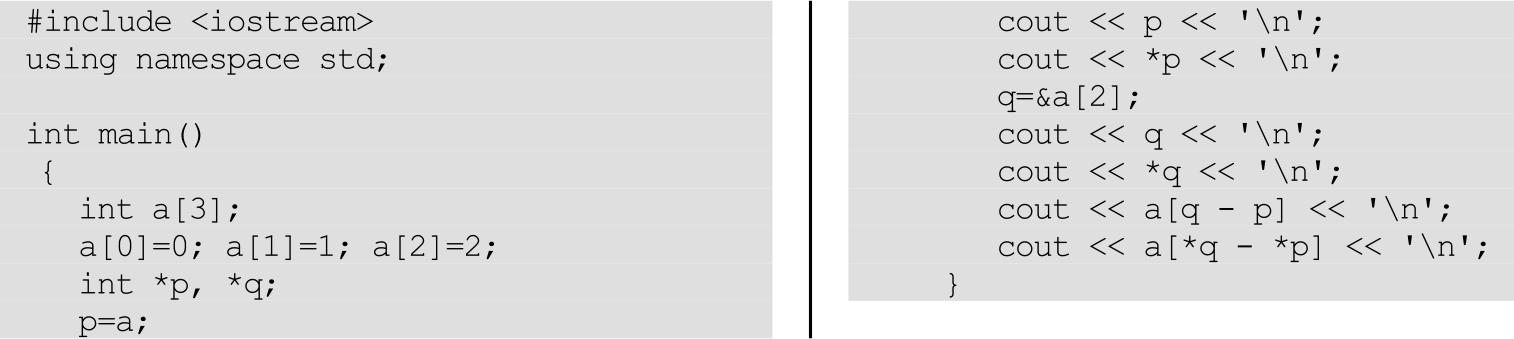 (3)使整数指针p的地址指向a(注意a就是a[0]),使整数指针q的地址指向a[2]。