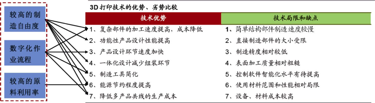 图1-22 对3D打印技术进行优势、劣势比较分析