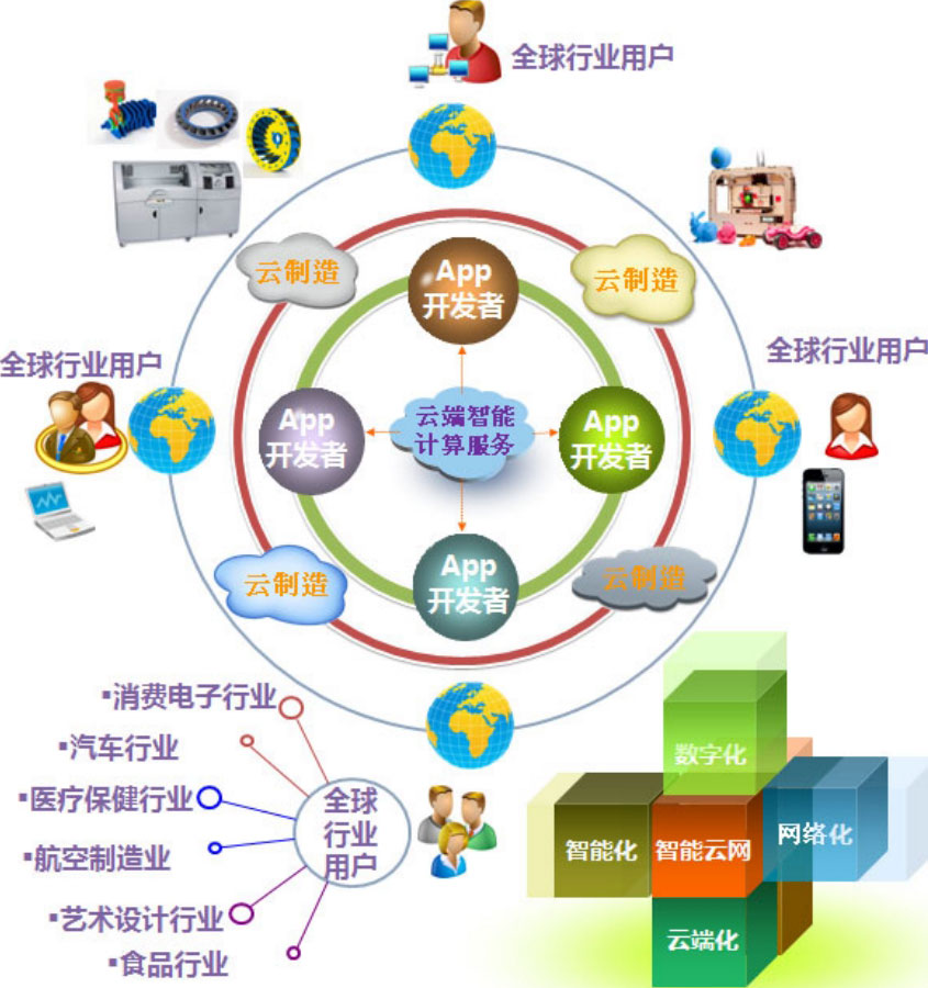 3D打印实质上反映了制造业向智能化不断演进的历程。由于3D打印个性化定制的特点,决定了其不具备规模经济(即所谓的“大规模生产”),相应地,3D打印技术推动的未来商业模式之一将是云制造,其由数百万个小规模、自动组织的生产节点组成。这个由众多小型制造业企业组成的超大规模分布式网络,结合云端的智能计算服务,将形成一种全新的“大规模定制”解决方案。