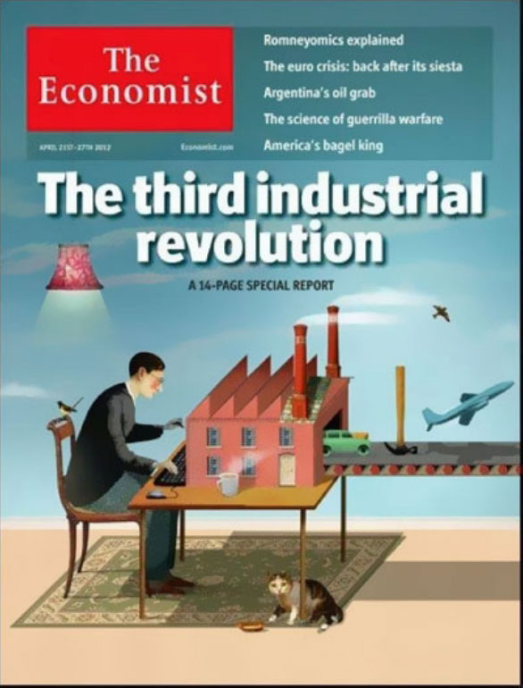 2012年,英国著名经济学杂志《经济学人》封面文章(如图2-3所示),声称3D打印将引发全球第三次工业革命。