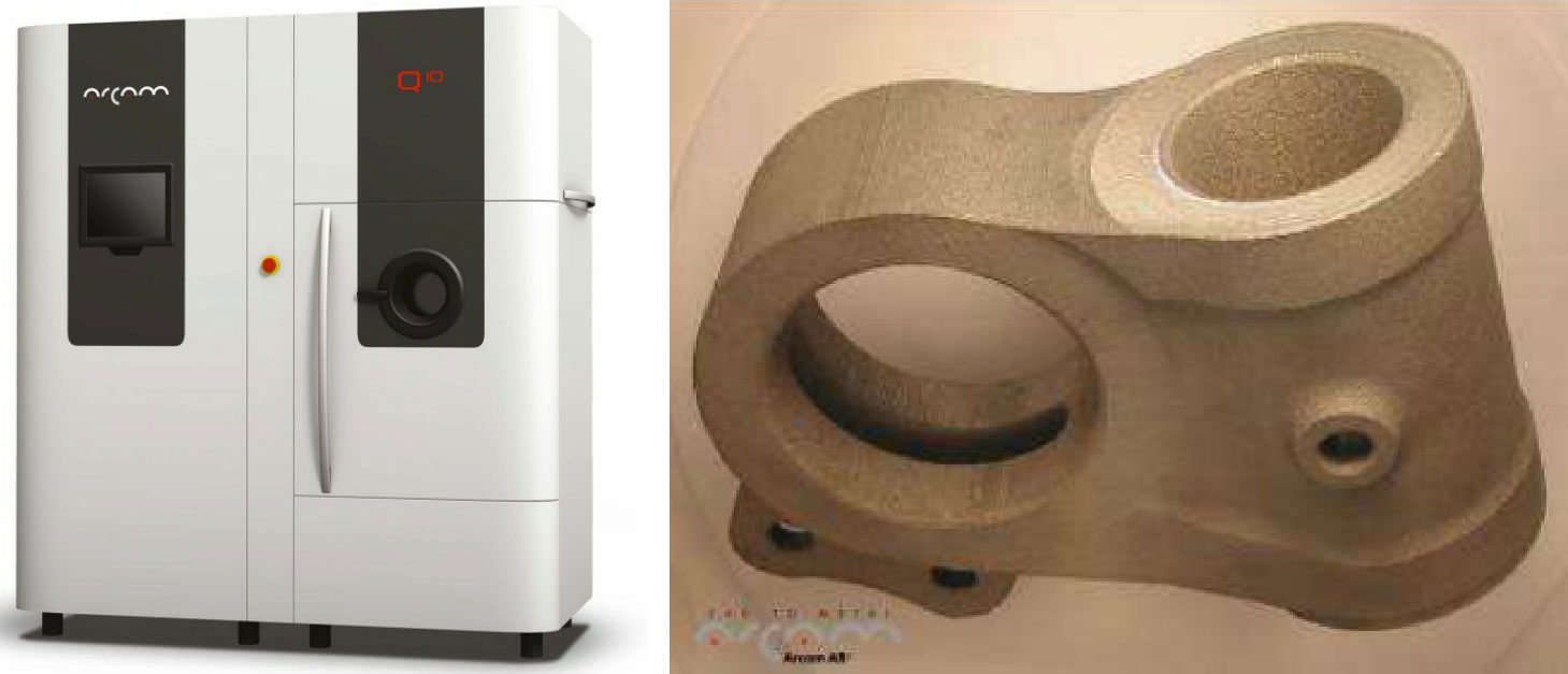 瑞典一家名为Arcam的公司使用EBM技术率先开发了EBM 3D打印机,使打印结果达到了非常高的品质,该技术在真空中逐层建立完全致密的金属物体。电子束快速成型速度快,是目前3D金属打印类中打印速度最快的,可达15kg/h。2013年3月,Arcam公司推出了Q10型3D打印机,是专门为其公司的假肢市场生产的机型,用来替换之前的A1型3D打印机。另外,Arcam公司还有专门针对航空市场的A2系列机型。