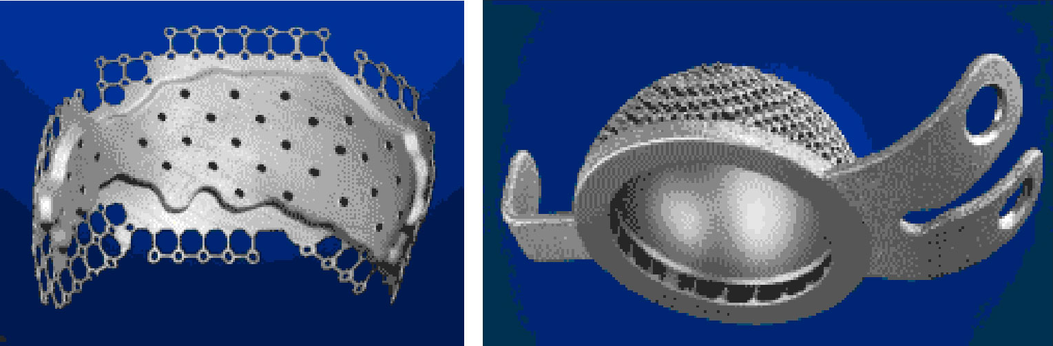 图2-22 SLM技术制造的钛合金头盖骨和关节窝生物移植体