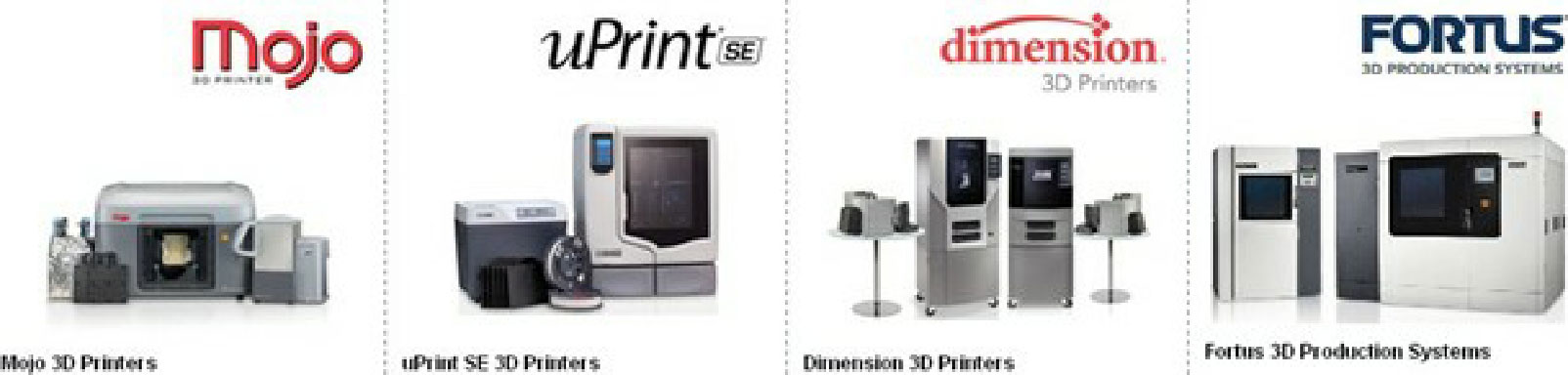 目前,Stratasys已成功打造了uPrint、Dimension和Fortus 3个品牌。其中桌面级的uPrint最低售价不到16,000美元,可打印中等大小的模型,支持彩色打印,适合工程师和教育工作者。落地式的Dimension问世于2002年,是目前全球市场最畅销的3D打印机系列之一,售价约32,000美元,使用坚固的ABS塑料作为打印材料,不仅能打印普通模型,还能打印车内组件,甚至是航空和医疗领域的零部件。Fortus被称为“3D生产系统”,覆盖从桌面级打印机到大型3D打印机在内的多款设备,打印物品的范围从概念模型到高要求的终端配件和制造工具,适用的领域则包括航空、汽车、商业、教育、医疗和军事等,当然售价也相对较高。Stratasys还推出了廉价的桌面级专业3D打印机Mojo系列,售价低至9,900美元,能快速打印出较小的ABS模具。此外,2012年4月,Stratasys还合并了以色列公司Objet,后者同样是3D打印机领域的巨头之一,其因参与《侏罗纪公园3》、《钢铁侠2》、《阿凡达》中的各尺寸模型的制作而在业界小有名气。2013年6月20日,Stratasys宣布收购日渐崛起的桌面级3D打印公司MakerBot。两者的合并意味着以Stratasys为代表的专业级打印设备和以MakerBot为代表的消费机型在技术和品牌上的弥合,并开创面向学校和企业的中端市场的可能。