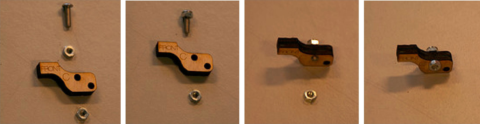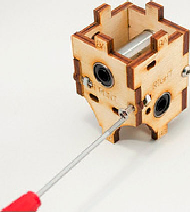 2.将3个30mm的螺栓从有字的一面插入,在另一面拧上螺帽。注意不要拧得太紧,螺丝应该能转动。做好后如图3-24所示,下一步就可以组装各个部件了。