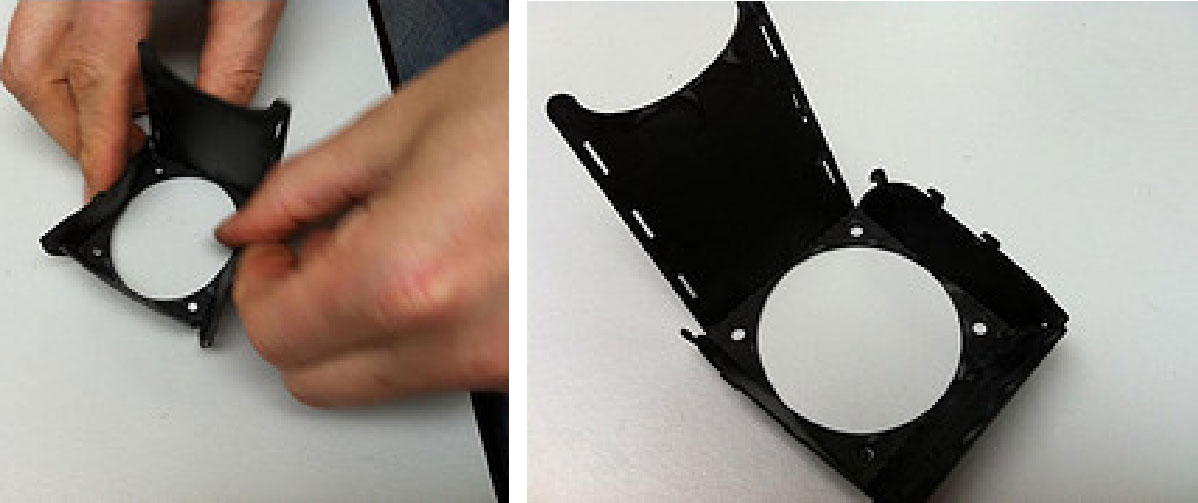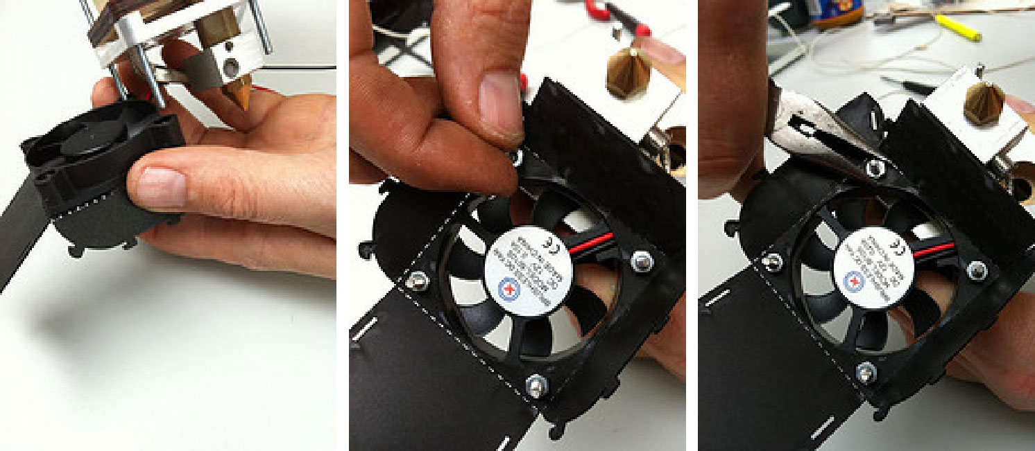 1.用30mm螺栓,把风扇安装到未标记侧。然后,将冷却传输片放置在该组件的顶部,如图3-67所示,并将它沿齿孔折。