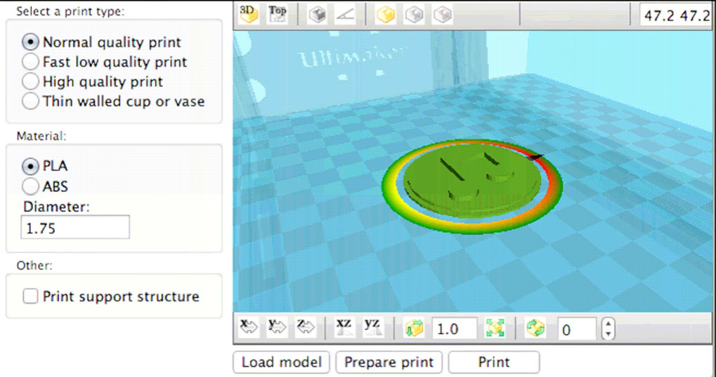 这里我们介绍一款名为Cura的 前台控制软件 ,也被称为 上位机控制软件、主机软件 ,是 运行在计算机 而不是打印机上的软件,其他更多的前台控制软件还有MakerWare、ReplicatorG、Repetier-Host、Printrun(含pronterface)、Repetier-Server、BotQueue等。