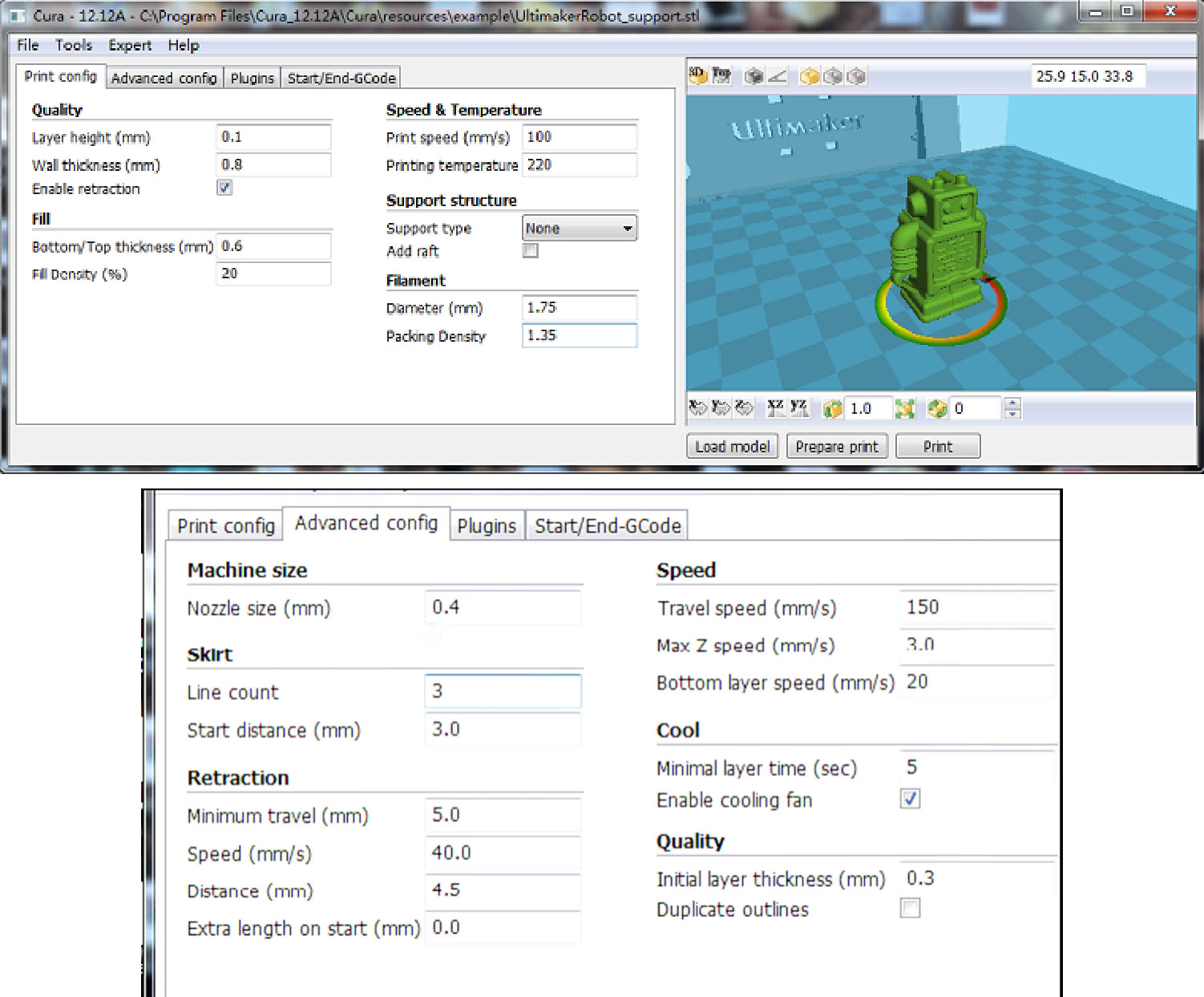 导出Gcode文件后,将它复制到SD存储卡再输入打印机,3D打印机就可以开始制作实体模型了。下面我们重点介绍如何用Cura软件生成Gcode文件,以及各种高级设置。
