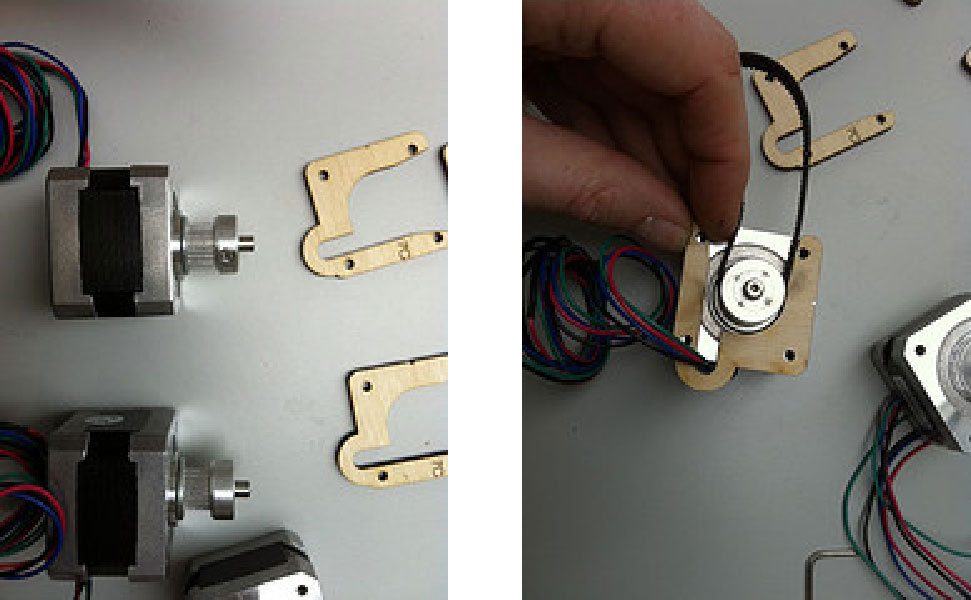 1.准备电机,将内径5mm的同步轮放到两电机上。在电机和同步轮之间留有一个微小的间隔(0.5mm),并固定好。