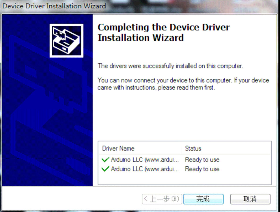 单击“Install”按钮开始安装。如果你是第一次安装该软件,软件会提示安装3D打印机的驱动程序。出现如图3-76所示界面表示驱动已安装完成。