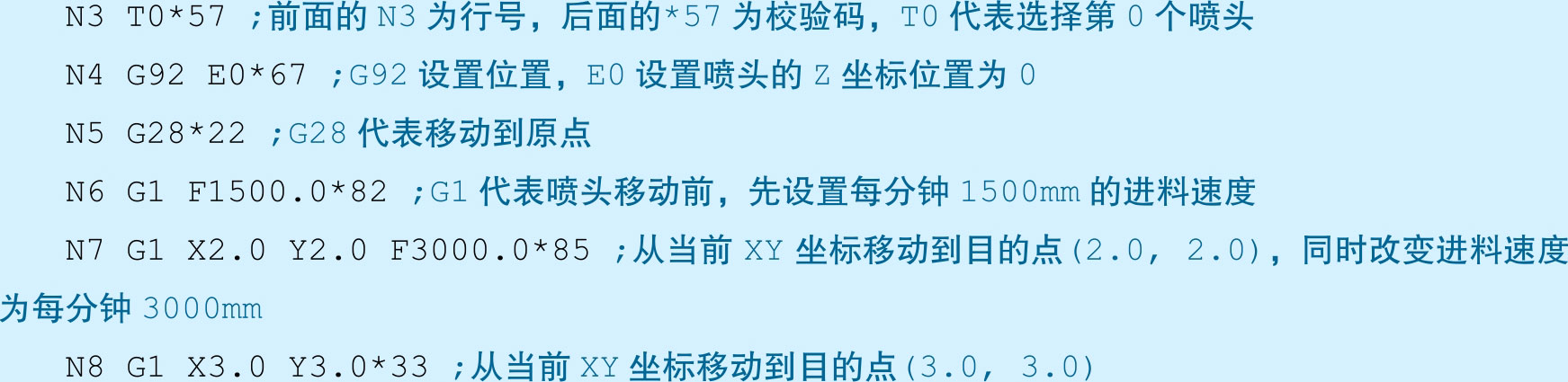 比如,一句能够被Ultimaker打印机识别的Gcode代码如下(;号后面为解释):