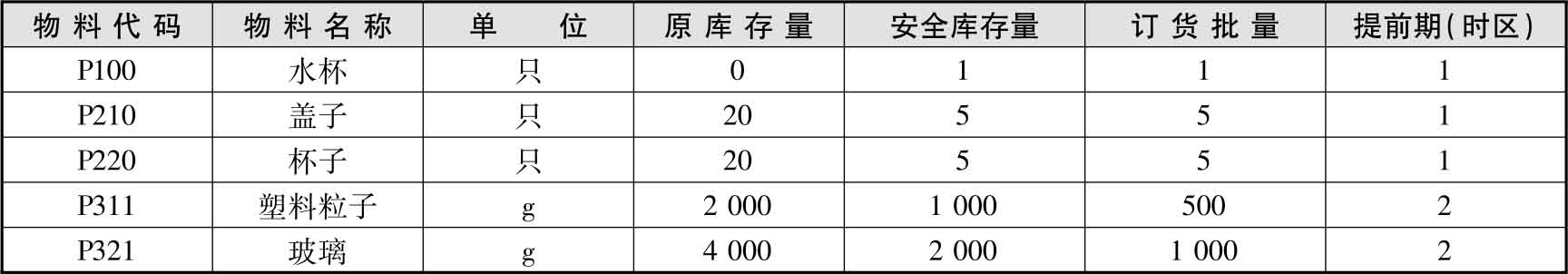 推算出玻璃水杯各时区的库存量、净需求量、计划订货量和计划订货下达,如表3-3所示。