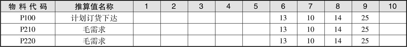 在实际应用中,可供货量与库存量合并使用,隐含着前一个时区的可供货量等于后一个时区的库存量。直接引用计划下达量Q X 推算出计划订货量Q O 和净需求量Q Q ;在实际计划订货时,不仅要满足净需求量,而且要符合订货倍数和订货批量。订货倍数是指由于物料包装、容器等条件的限制,必须按计量单位的某一倍数订货。例如,一箱啤酒有12瓶,如果需求物料的单位是瓶,但是供应商只以箱为单位供货,因此,在采购啤酒时要折算到箱。订货批量是由于订货成本、运输成本等原因,在下达订货订单时,每批订货量不能少于每一个阈值,否则,物料的运输与订货费用不经济。有些单位对具体物料订货下达的订单数据有一个范围,以提高生产经营效率和效益。