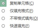 复制填充中,可以选择的填充方式有:“复制单元格”、“仅填充格式”、“不带格式填充” 、“快速填充”四种。