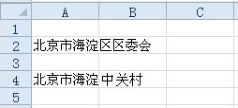 在Excel 2013中,如果输入的数据过多,超出了单元格的长度,通常会出现如图2-19所示的两种情形。若右边的单元格没有存放任何数据,则文本内容会超出本单元格的范围显示在右边的单元格上;若右边的单元格存放了数据,则只能在本单元格中显示文本内容的一部分,其余文字被隐藏。例如,在A2与A4单元格中都输入文本“北京市海淀区区委会”,则A2单元格由于其右侧单元格没有存放任何数据,因而可以显示全部文本;而A4单元格由于其右侧单元已含有文本“中关村”,因而只能在A4单元格中显示文本内容的一部分。