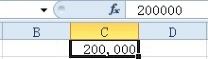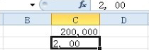 输入数字时,在数字间可以加入逗号作为千位分隔符。但如果加入的逗号位置不符合千位分隔符的要求,则Excel 2013将输入的数字和逗号作为文本处理。例如,在单元格中输入“200,000”,则Excel 2013会将其识别为数值“200 000”,如图2-17所示;若在单元格中输入“2,00”,则Excel 2013只会将其识别为文本“2,00”,如图2-18所示。