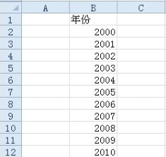 若需要填充的内容与初始单元格呈序列关系,则可以使用“填充序列”命令进行填充。例如,需要输入2000到2010年每年年份时,在输入初始单元格后,可以使用自动填充柄填充并选择“填充序列”填充方式,就能达到需要的填充效果,填充结果如图2-22所示。