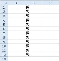 若需要填充的内容和格式均与初始单元格一致,则可以使用“复制单元格”命令填充。例如,当需要输入的性别全部为男性时,则在输入初始单元格后,可以使用自动填充柄填充并选择“复制单元格”填充方式,就能达到需要的填充效果,填充结果如图2-21所示。