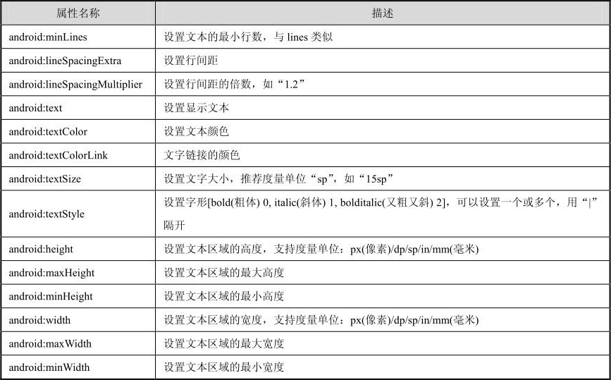 TextView类继承自View类,TextView控件的功能是向用户显示文本的内容,但不允许编辑,而其子类EditText允许用户进行编辑。