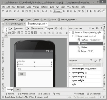 【例4-1】 以登录界面为例,构建LoginDemo 应用,效果如图4-1 所示。