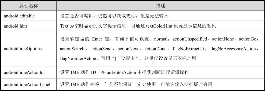 EditText和TextView的功能基本类似,它们之间的主要区别在于EditText提供了可编辑的文本框。比如,要实现一个登录界面,需要用户输入账号、密码等信息,然后获得用户输入的内容,把它交给服务器来判断。下面的代码定义了一个提示内容为“用户名”,id为username的控件:
