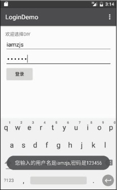 String msg="您输入的用户名是"+usernameET.getText()+",密码是"+passwordET.getText();