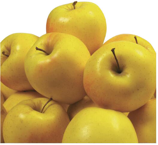 金冠苹果又名黄香蕉、黄元帅、金帅,苹果中的著名品种,果实品质优良。金冠苹果个头大,成熟后表面金黄,色中透出红晕,光泽鲜亮,肉质细密,汁液丰满,味道浓香,甜酸爽口。金冠在我国栽培面积较广,日照时间长、昼夜温差大的地方都适合其生长,我国辽宁、甘肃、新疆等地皆出产优质金冠苹果。