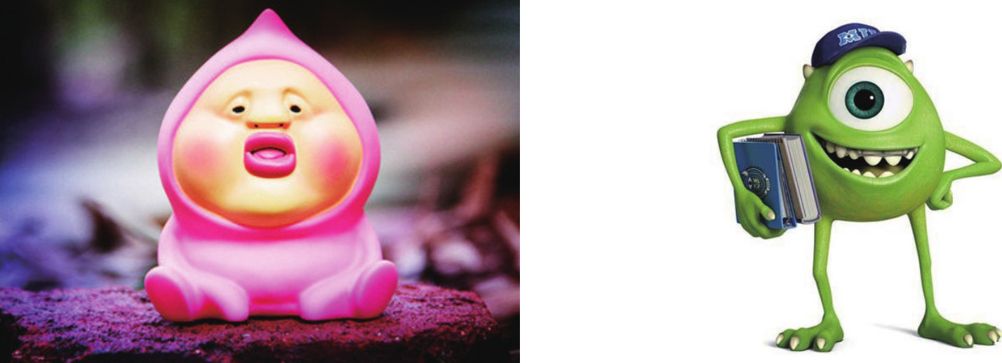 “丑萌”第一眼看上去不太好看,但是视觉冲击力强。不需要额外说明也会令人印象深刻,难以忘怀。喜欢的人会非常喜欢,不喜欢的人可能会敬而远之。例如,屁桃君和大眼仔,可能还有过气“网红”猴腮雷。