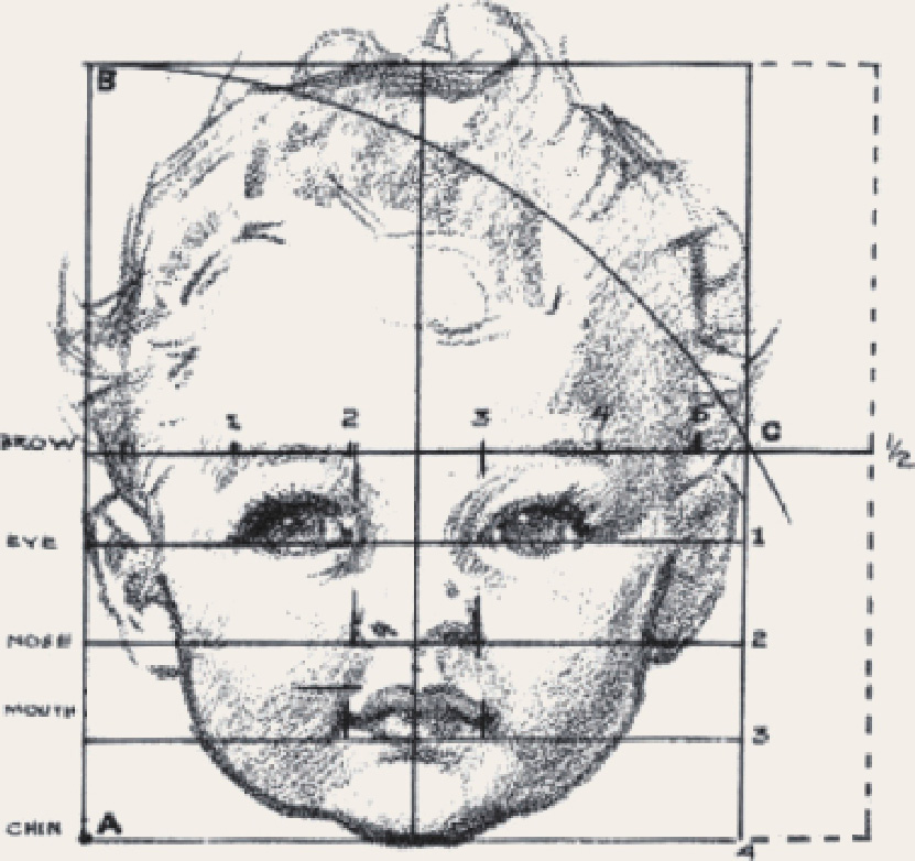 如果你仔细观察可以发现,三庭五眼不适用于绘制小孩的五官。小孩的眼睛位置大概在头部的中间位置,而且眼睛相对较大,五官都还没有完全长开,比较圆润,骨骼线在他们的脸上不是非常清晰。小孩之所以萌,和这个比例有很大关系。