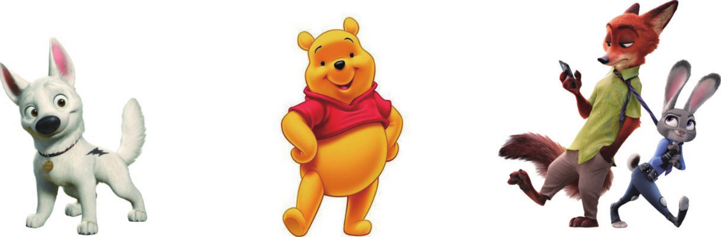 当卡通形象是以人为原形时,其头部通常多是在小孩的五官比例的基础上稍加修改,使其变得更加夸张。