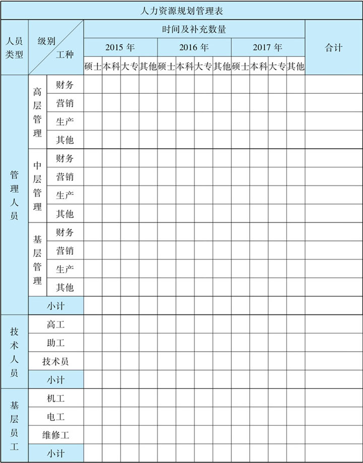 结合人力资源需求分析结果与人力资源供给分析结果,编制人力资源规划,并进行供求综合平衡,编制各分项业务具体的执行、调整计划,以期达到人力资源供求协调平衡。