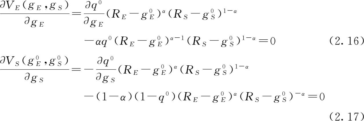 ,均衡条件可以类似地由(2.14)式和(2.15)式获得,该纳什均衡要满足如下条件: