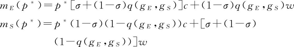 根据什卡佩尔达斯等(1997)的证明,本节所设定的函数性质能够确保存在一个唯一的内部纳什均衡。不妨将这个纳什均衡定义为