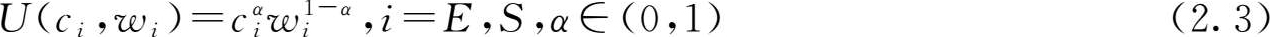对两种最终消费品ci和wi,两个国家有相同的柯布—道格拉斯效用函数: