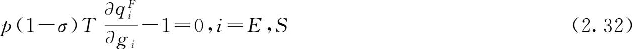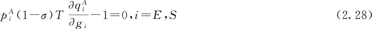 表示国家i=E,S收入增加带来的边际效用。不难证明,给定一个国家的武器装备水平及其决定下的冲突结果,该国对石油的需求和供给分别为