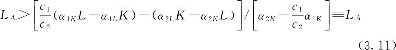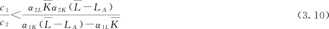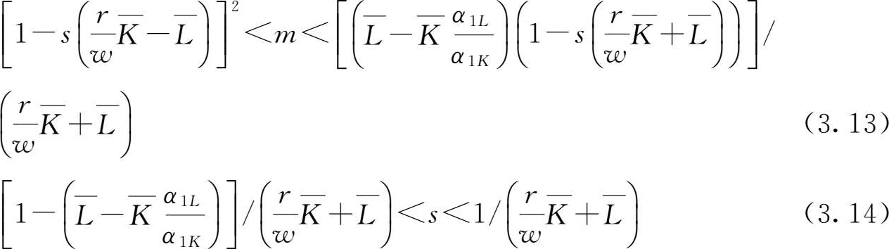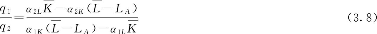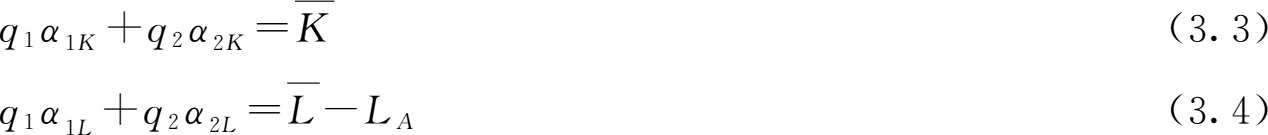 给定均衡要素价格和生产性行业生产要素的总供给水平,(3.3)式和(3.4)式决定了两个生产性行业的均衡产出水平